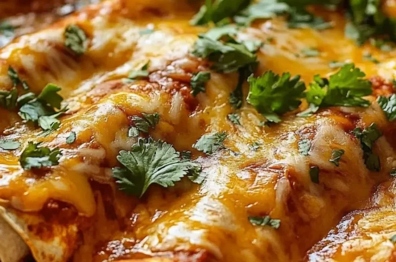 4. Add Sauce: Pour the remaining enchilada sauce over the top of the rolled enchiladas, making sure they are well-coated.